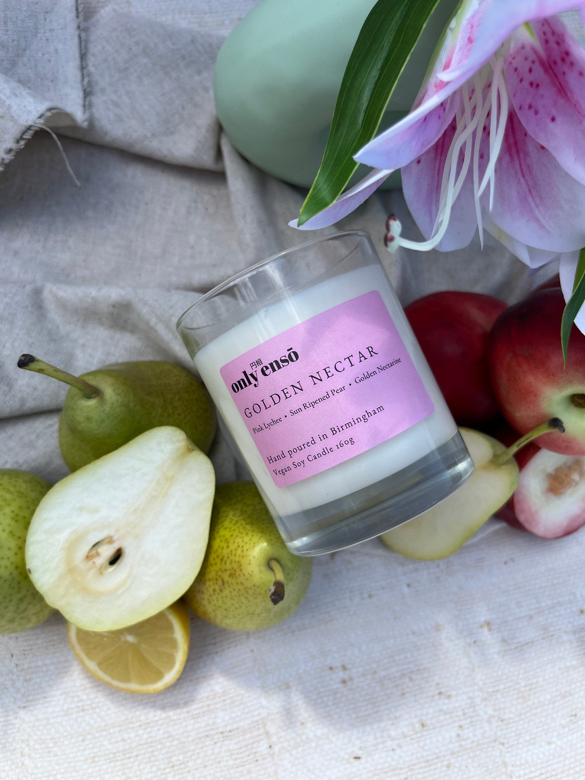 Golden Nectar Soy Wax Candle | Pink Lychee, Sun Ripened Pear and Golden Nectarine